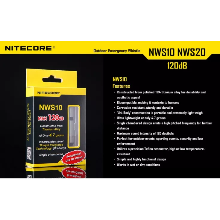 Nitecore NWS10 120db single chamber titanium whistle – can be attached to a keyring, zip pull or neck chain.