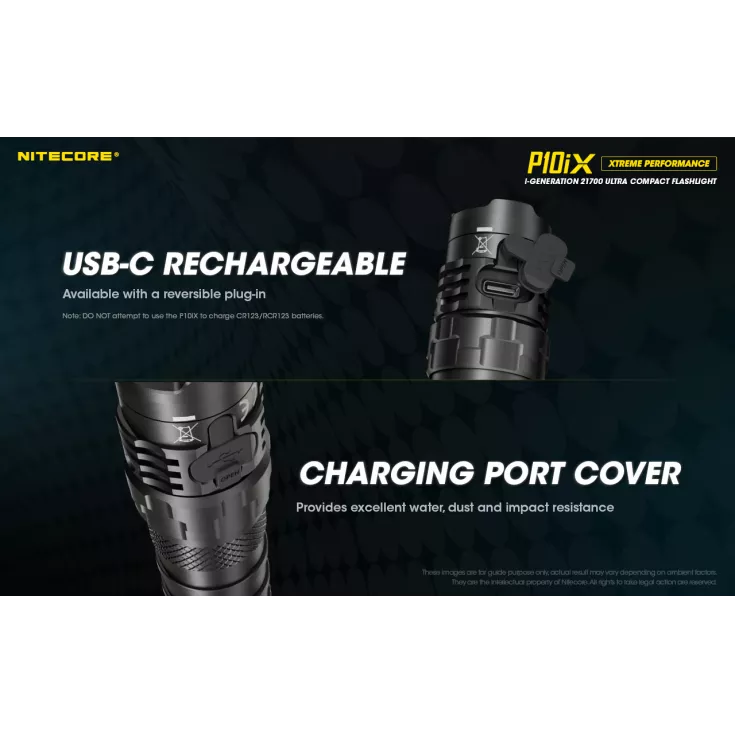 The P10iX includes Nitecore’s NTH10 tactical holster and a durable pocket clip. The P10iX is compatible with a range of additional accessories, including 25mm diffuser, traffic wand and filters, plus gun mounts, the RSW2i remote switch and the NTR10 tactical ring (available separately).