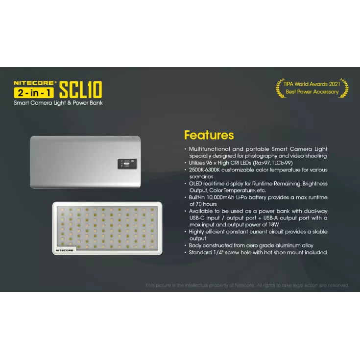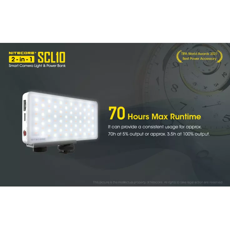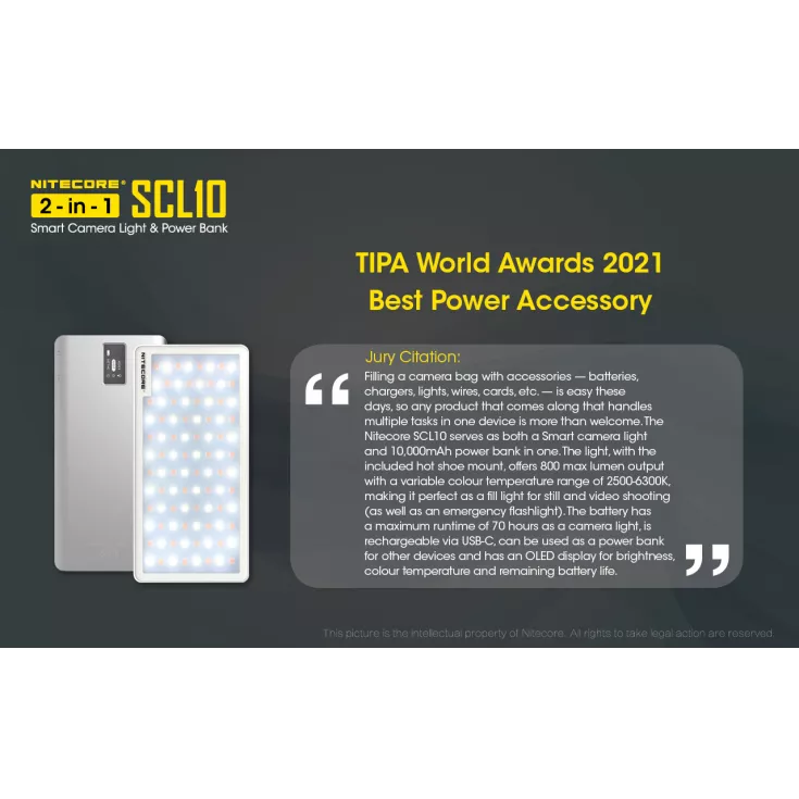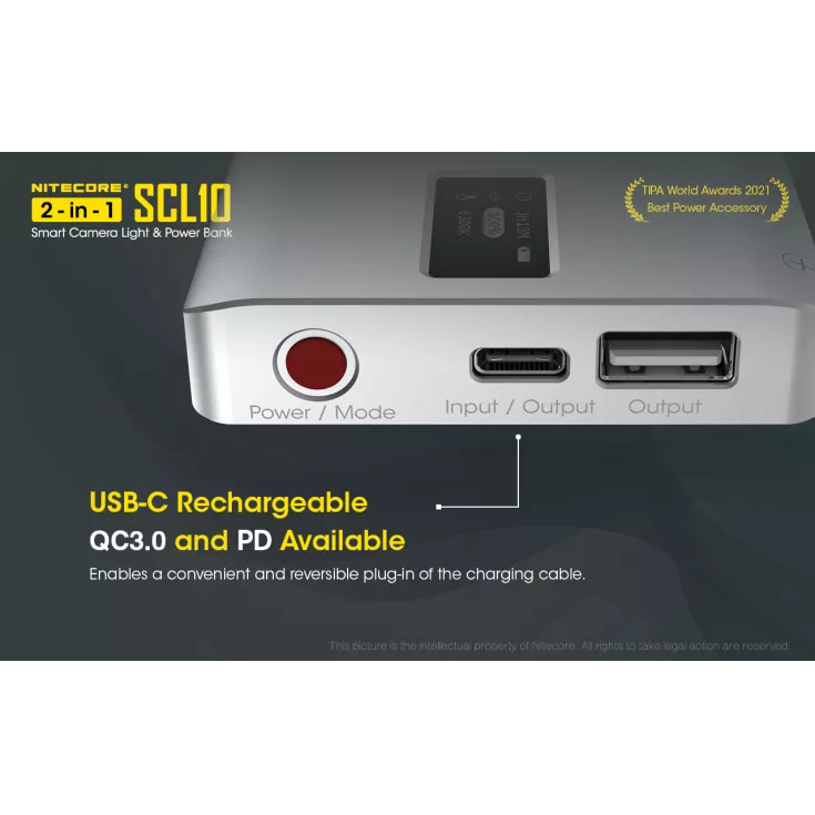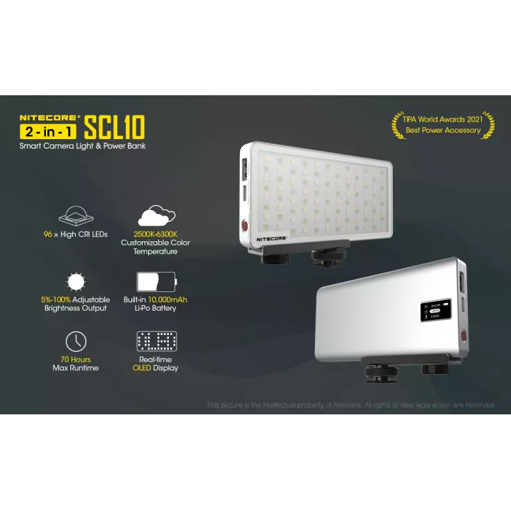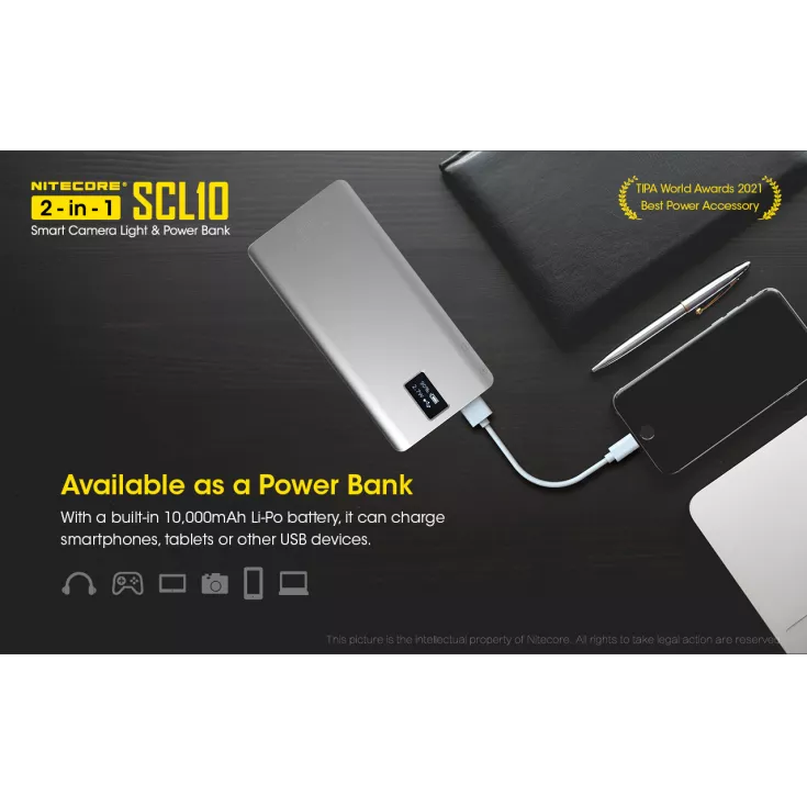 The Nitecore SCL10 is a smart camera light and 10,000mAh power bank in one compact unit.