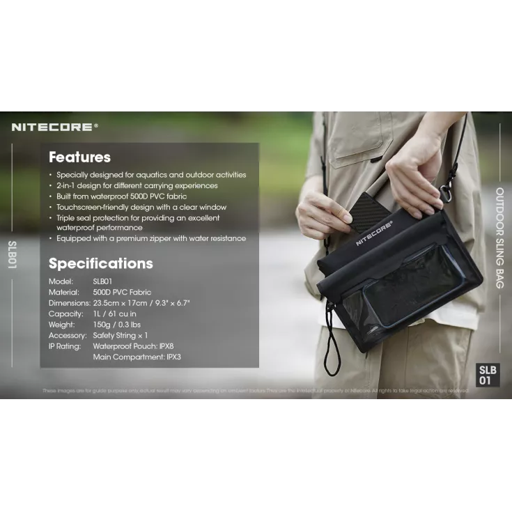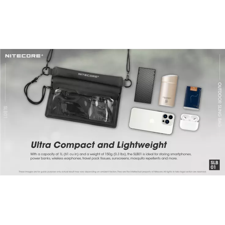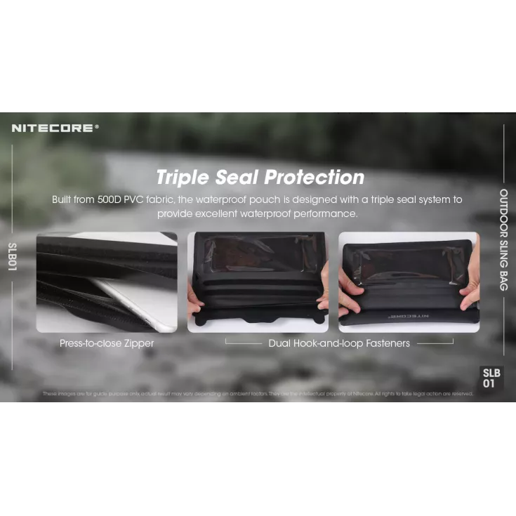 The SLB01 outdoor sling bag is specifically designed for aquatics and outdoor activites such as rafting, kayaking, camping, hiking and more. The bag features a waterproof pouch with a triple seal system providing excellent waterproof performance. The clear window design allows you to use your phone and take pictures whilst keeping it dry.