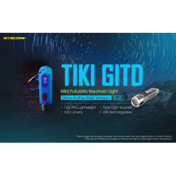 Nitecore TIKI GITD BLUE Includes: Key ring attachment clip.