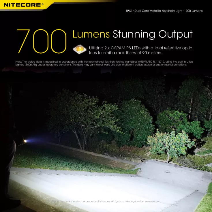The TIP SE is the latest addition to the Nitecore T series of keyring lights. With an impressive maximum output of 700 lumens from the 2 x OSRAM P8 LEDs, the torch is ideal for attaching to your keys, keeping in your pocket or glove box or attaching to your clothing or accessories. This is the torch you will most likely have on you when in need of it most.