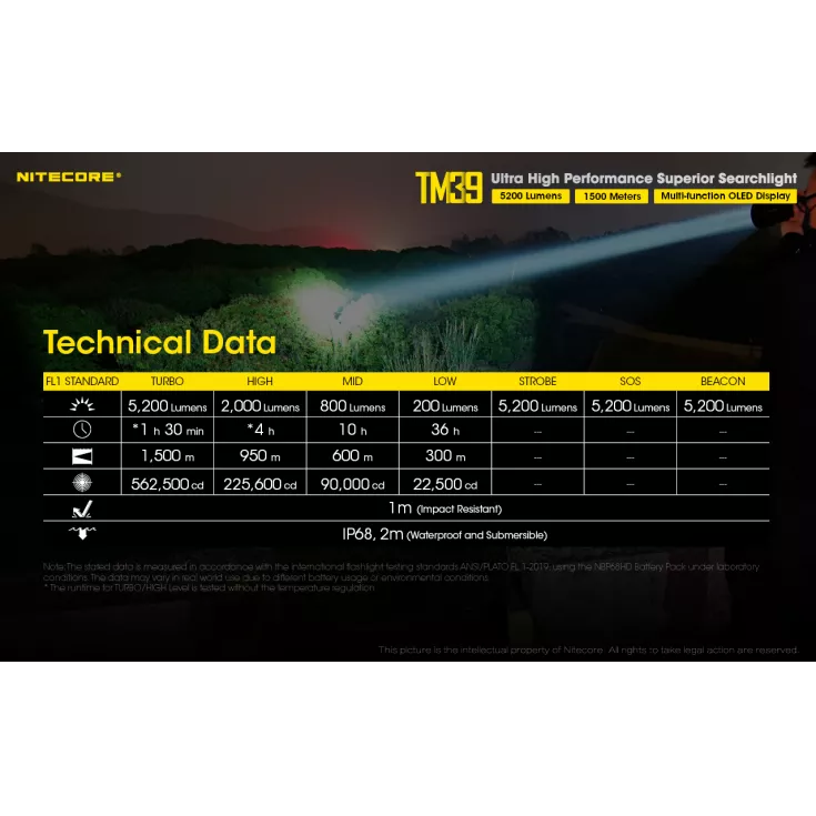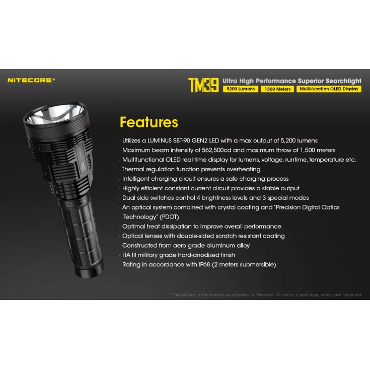 The Nitecore TM39 has been designed to a high specification. It’s features include: