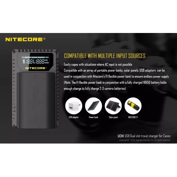 The Nitecore UCN1 charger is designed exclusively for use with Canon camera batteries, specifically the LP-E6, LP-E6N and LP-E8. The charger has a USB cable to power it which can be plugged into a laptop, computer, USB adapter, power bank or solar panel. With a broad range of charging options available, the UCN1 is extremely versatile to ensure your camera batteries are always ready to capture the perfect shot.