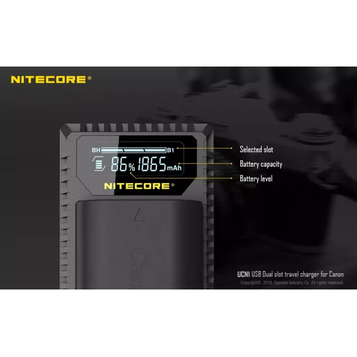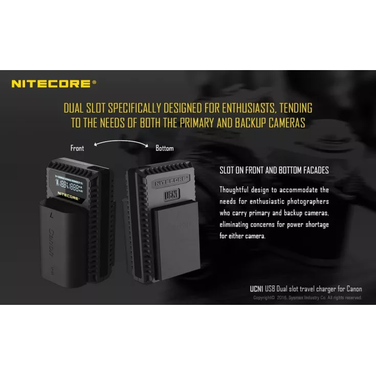 Featuring two slots, one on the front and one on the back of the charger, the UCN1 provides a power source for your primary battery and a back up cell if required.