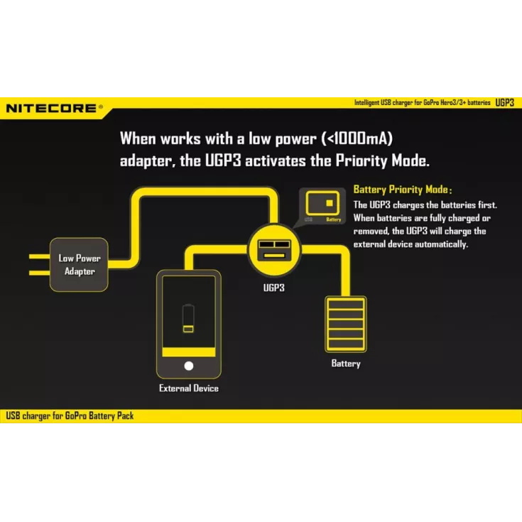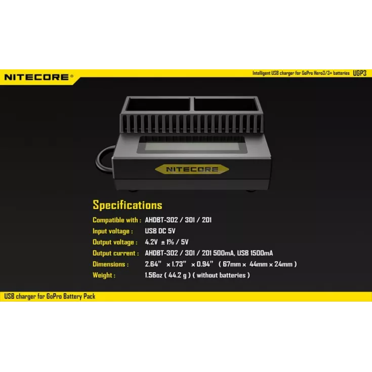 Charger compatible with AHDBT-302 / 301 / 201. Designed for optimal heat dissipation.