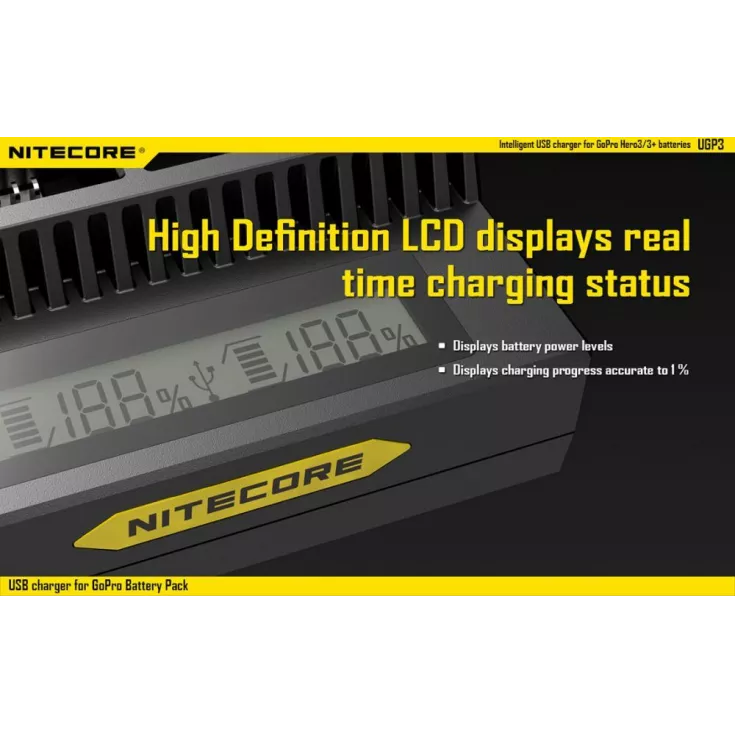 Charger’s LCD display shows the battery power levels & the extent of the charging progress.
