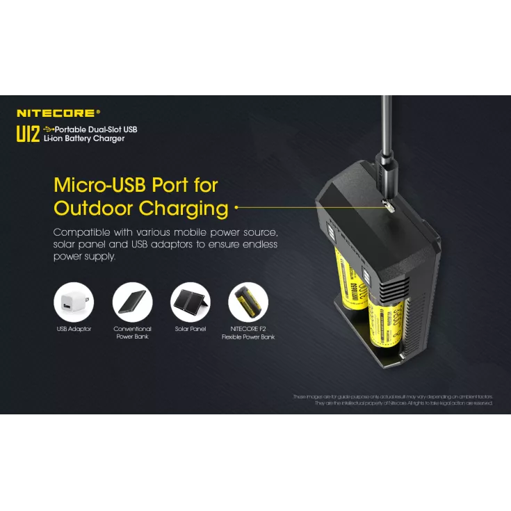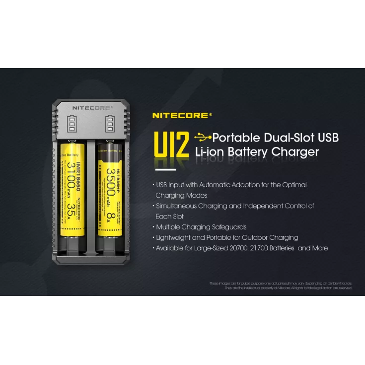 The Nitecore UI2 2 bay USB li-ion battery charger is perfect for charging on-the-go and is compatible with a wide variety of batteries, including 20700 and 21700 cells.Â