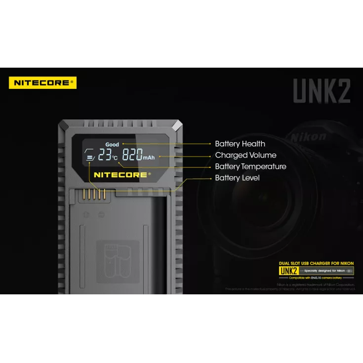 Nitecore have carefully considered the requirements of a photographer and created a charger that can charge two of the Nikon batteries simultaneously, to ensure no moment is missed due to power inadequacy. The slots have a maximum output of 1000mA, providing fast and efficient charging.