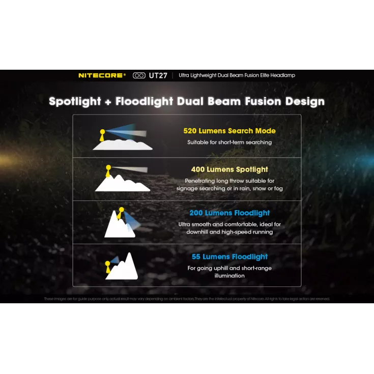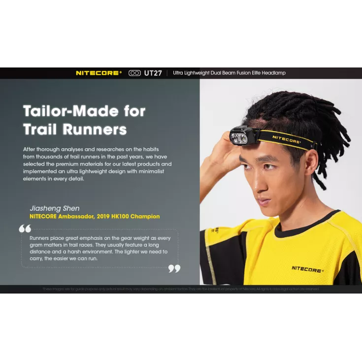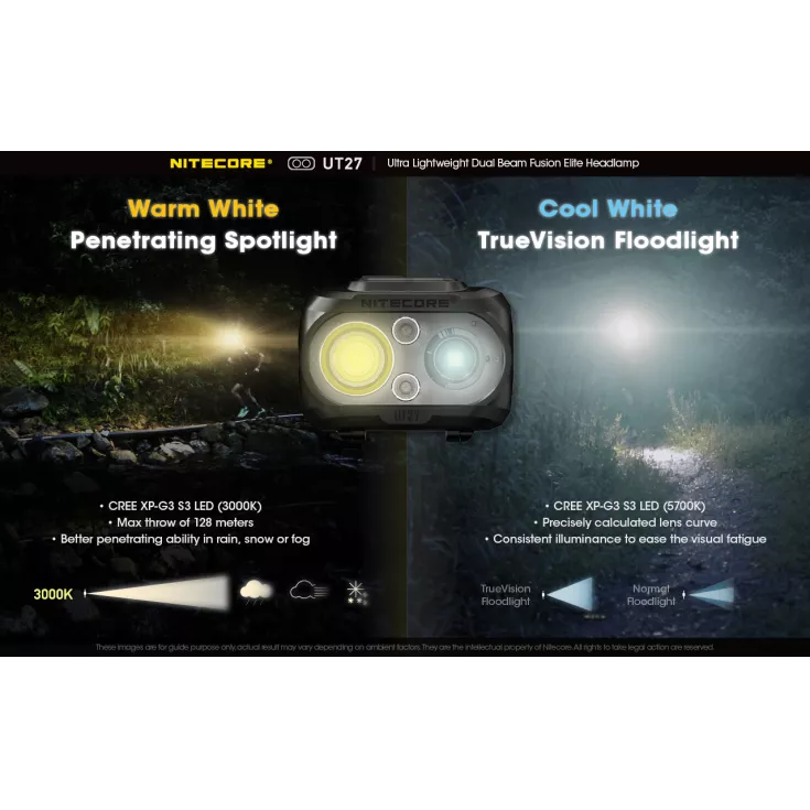The Nitecore UT27 is a lightweight, dual beam head lamp with dual power sources. Primarily designed for use while running, the lightweight design (only 74 grams!) is comfortable to wear for long periods and can be used in conjunction with external power banks for extended runtimes.