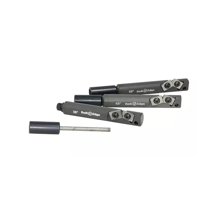 The Duromite V-groove cutter is designed for use with straight edge knives and features a 40º inclusive angle on the Duromite sharpener maintains a consistent 20º double edge on your blade. For serrated blades the diamond honing rod can be used to sharpen each groove of the blade.