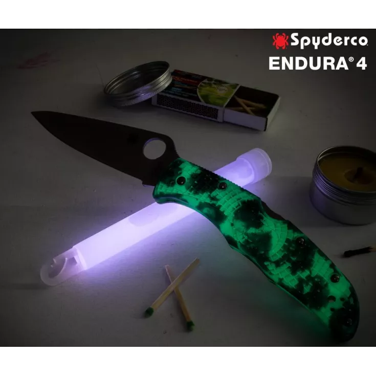 The Spyderco Endura (C10ZFPGITD) is a limited edition folding knife with a unique zome pattern, glow in the dark handle. The knife has an overall length of 8.78″ (22.3 cm) and weighs 3.35 oz. (96g).