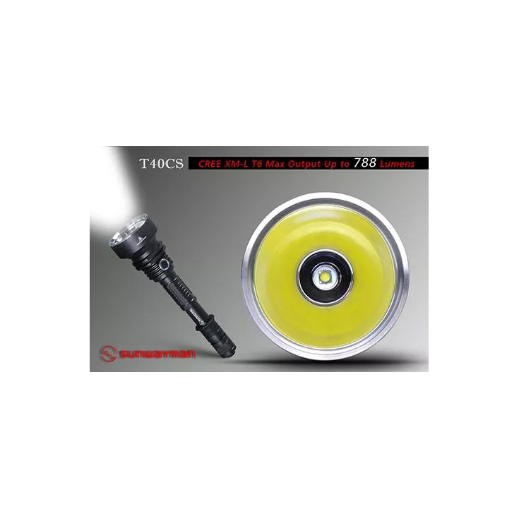 The Sunwayman T40CS XM-L U2 is specially designed for those who need an extremely high performance flashlight. Fitted with newly designed SUNWAYMAN reflector, T40CS has a powerful long throw, perfect spot and ideal beam pattern. Maximum output reaches as high as 845 lumens with an effective range of 500+ meters.