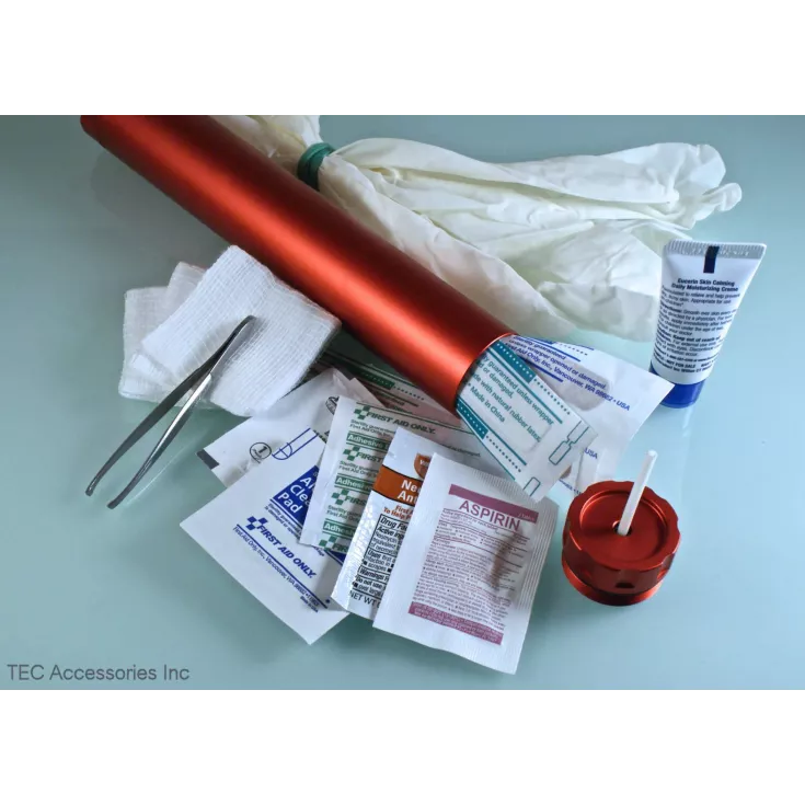 - First Aid Kit:Â bandages, gauze, medication, medical gloves, creams, alcohol wipes, tweezers