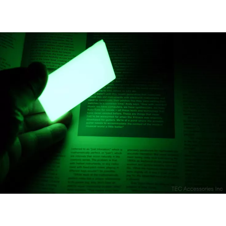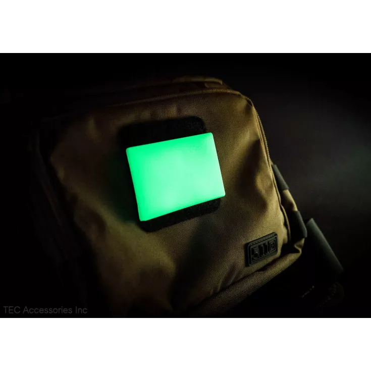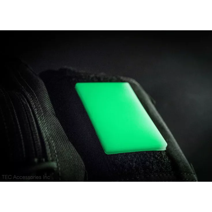 The patch is made from TEC Accessories’s Embite technology which takes its ‘charge’ from exposure to sun or UV light; the longer the exposure time and the higher the light intensity, the longer and brighter it will glow. On the reverse is the ‘hook’ side of a standard Hook and Loop fastener system which allows for attachment to any ‘loop’ surface. The mating Loop material is also included ith a strong adhesive backing so that the patch can be attached to anything!